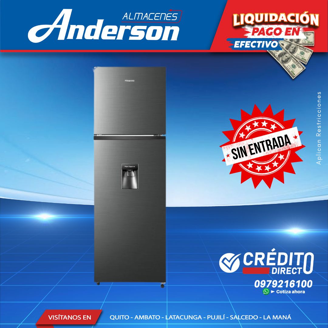 REFRIGERADORA HISENSE 267LTS. NF 2PTAS CON DISP. DE AGUA